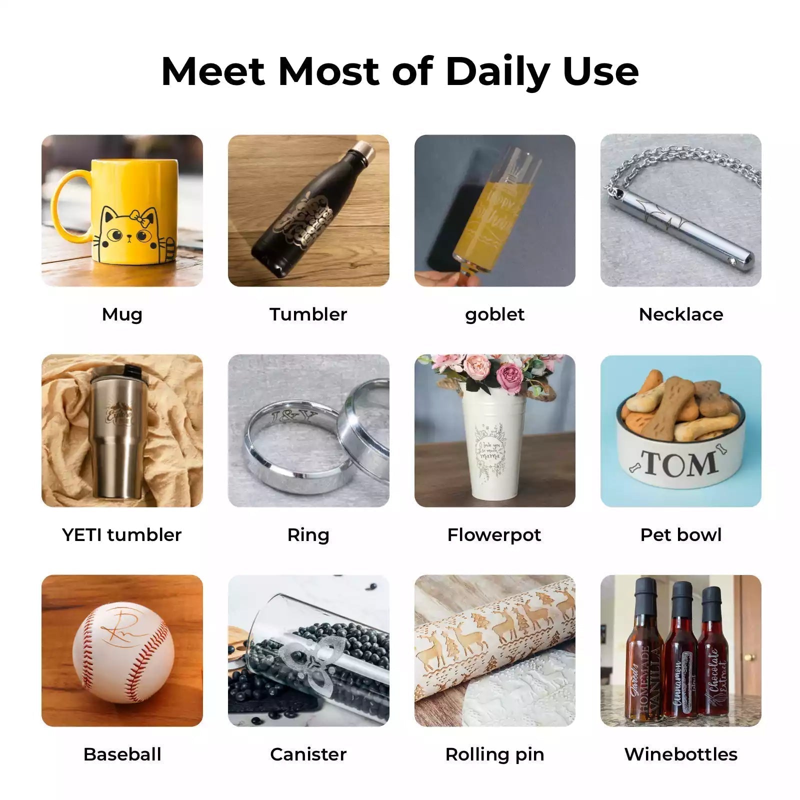 From home to outdoor, from party to sport, RA2 Pro suitable for 90% daily use cylinders and spheres. Make unique wedding wine glasses and custom jewelry.