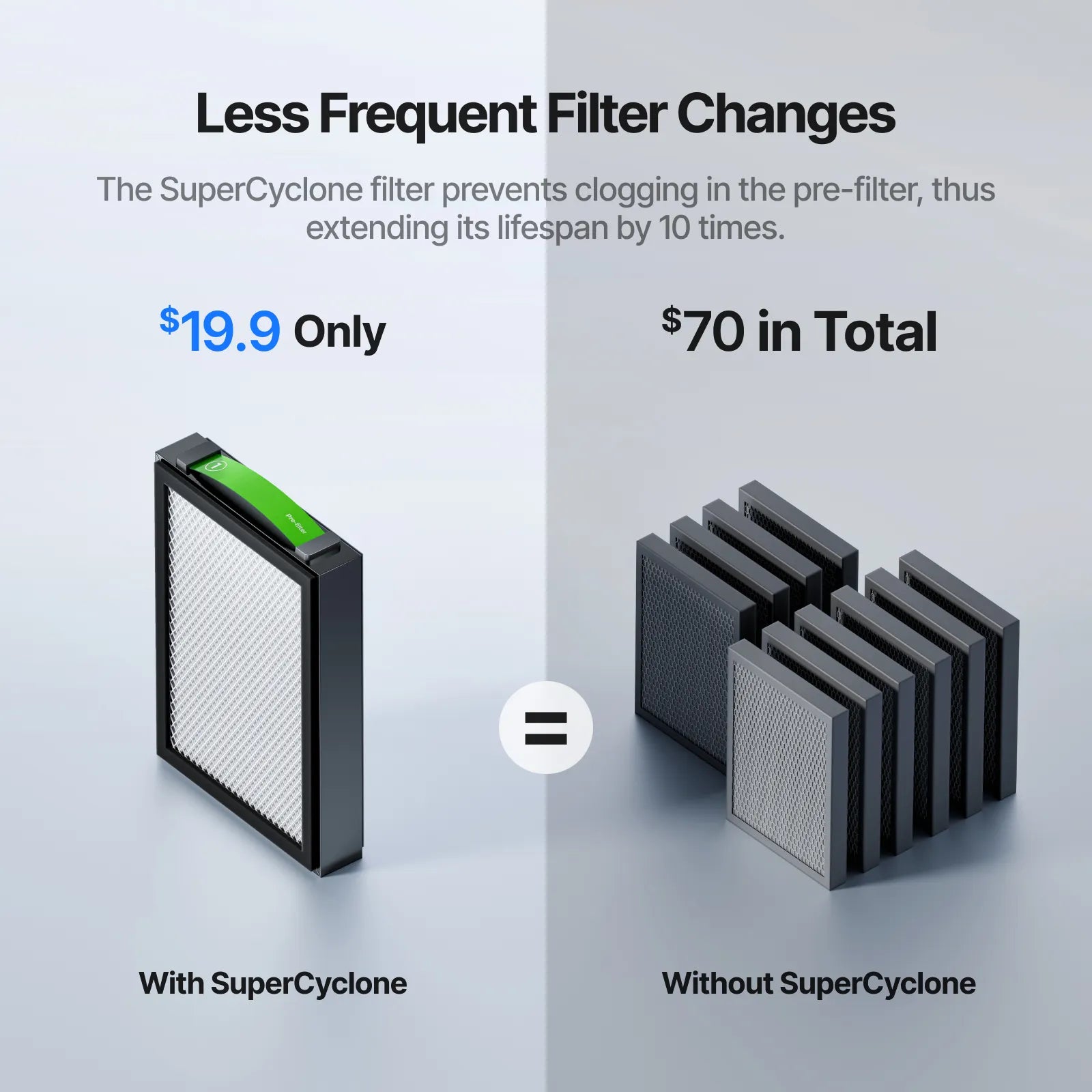 It is easy to clean and reuse. Simply wash it to keep the cyclone working like new, saving you the cost of replacing pre-filters.
