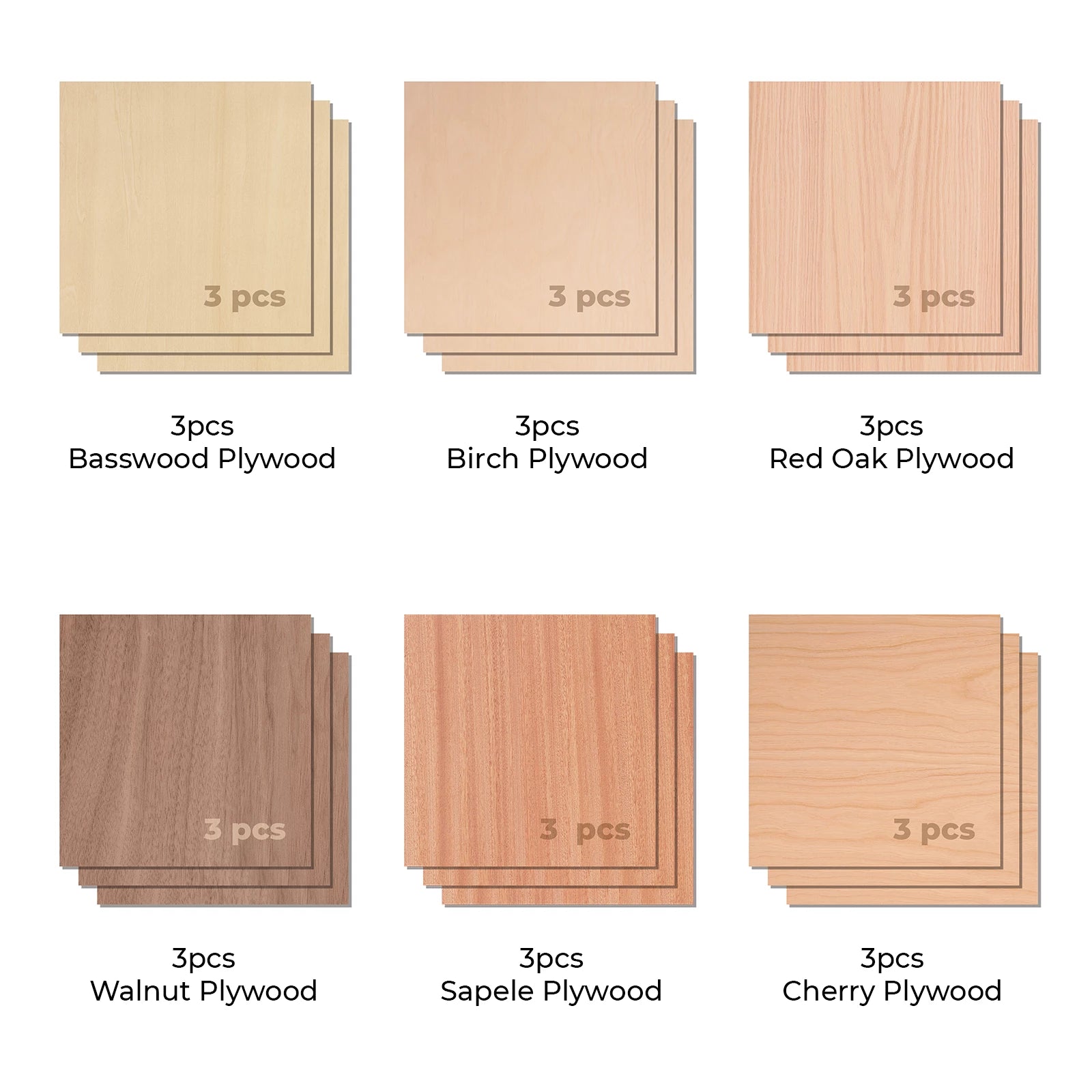 - Details: 12" x 12" x 1/8" premium Basewood plywood, Birch plywood, Red oak plywood, Walnut plywood, Bubinga plywood, and Cherry plywood won't warp or deform.
