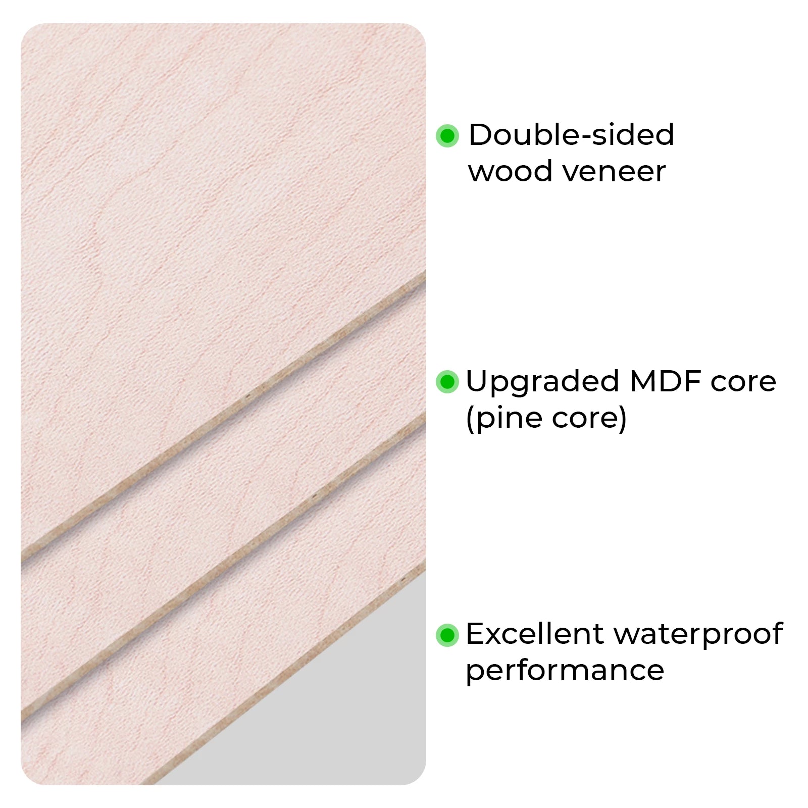 - Faux maple MDF board is a practical basic material, sturdy and not easy to break or deform, with a flat and smooth surface and neat edges without burrs.