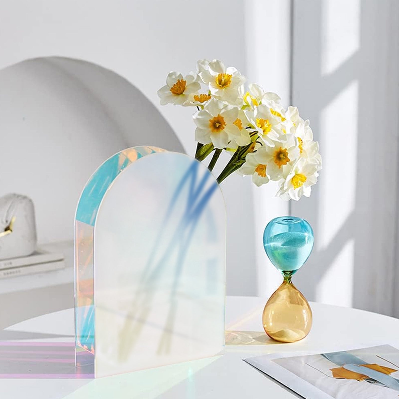 Vibrant colors: These clear iridescent striped acrylics of glass catch light and reflect an iridescent transparent blue color.