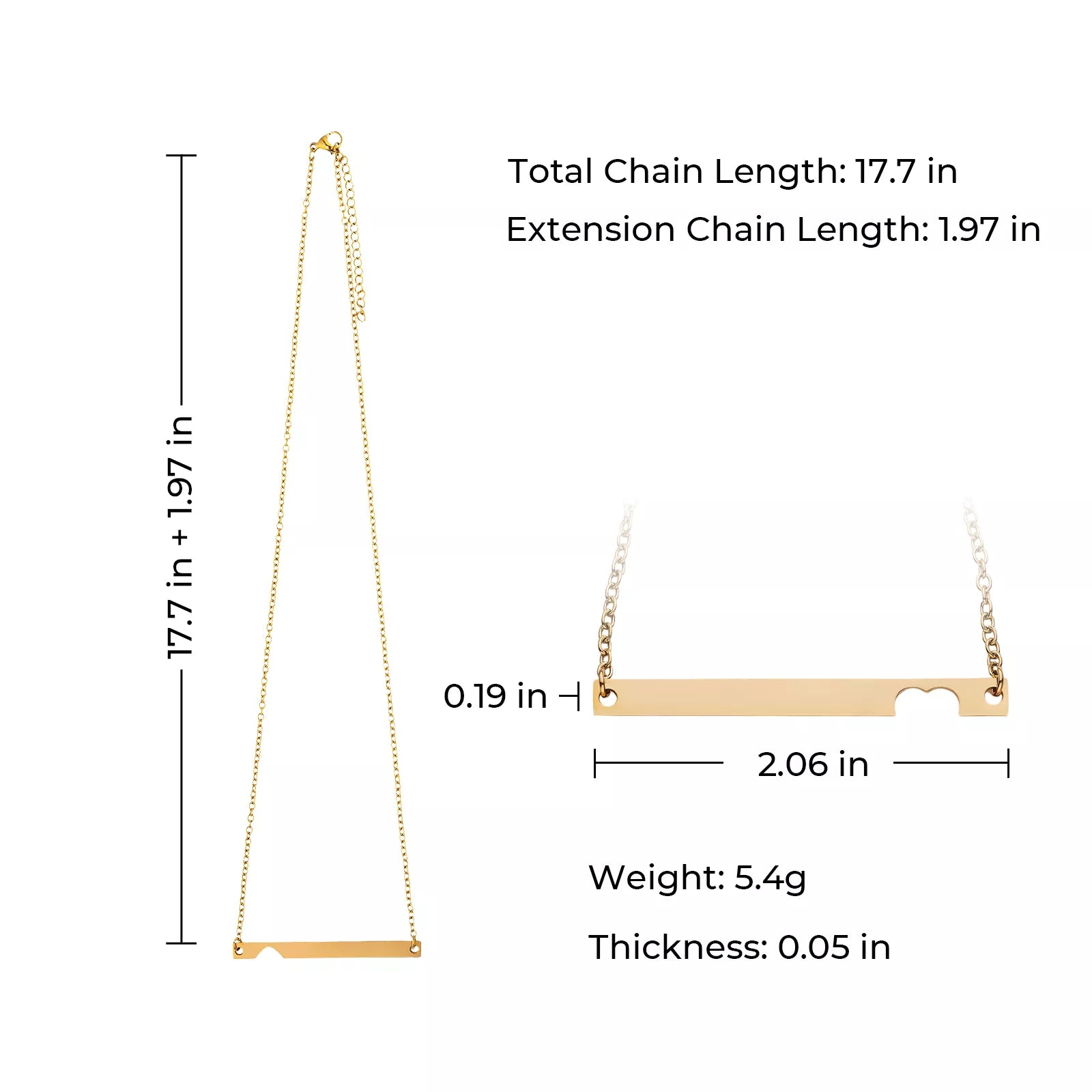 - Product DimensionThe tag length is 2.06 in x 0.19 in. The total chain length is 17.7 in, with a 1.97-inch extension chain.