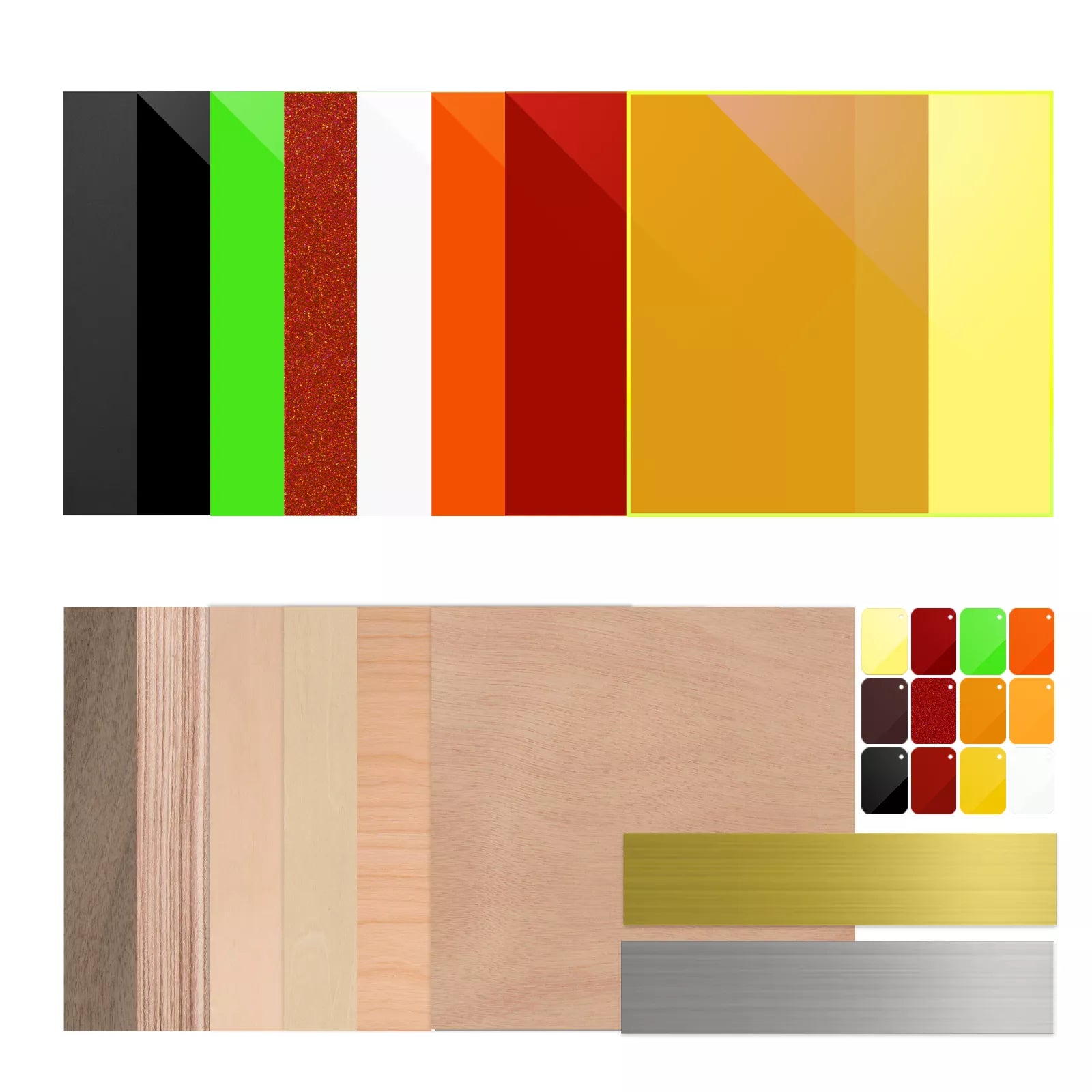 A must-have material pack with 17 kinds of popular materials, 34 pcs laser materials. Perfect for getting started with laser machines such as xTool S1.