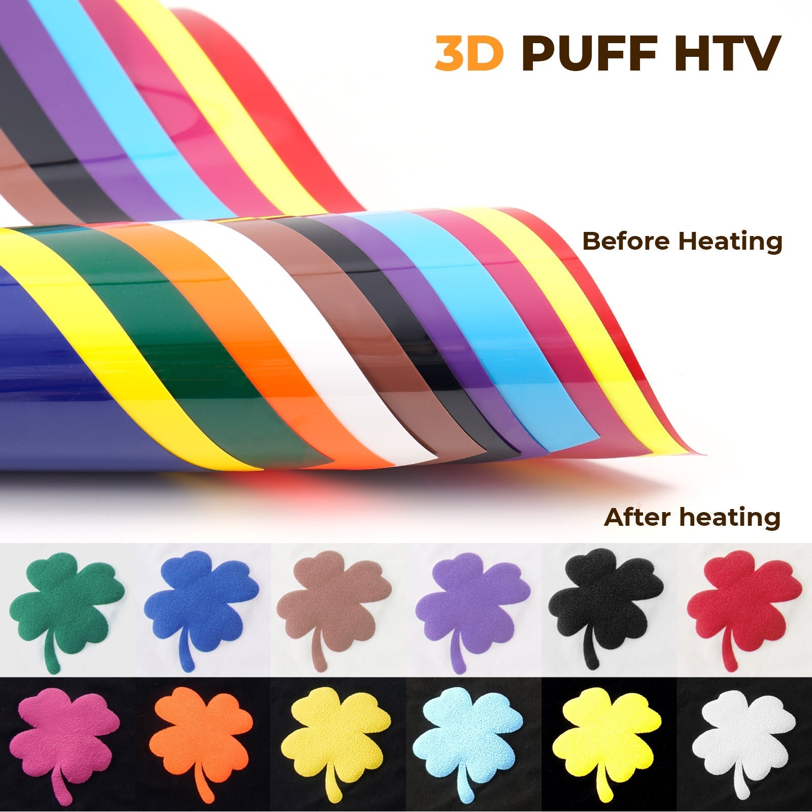 - What's Included14 x Mix Colors Puff Vinyl Heat Transfer 3D