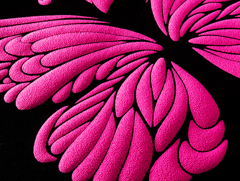 Features: This creates a foaming effect when pressed and heated, resulting in a unique raised "puff" finish.