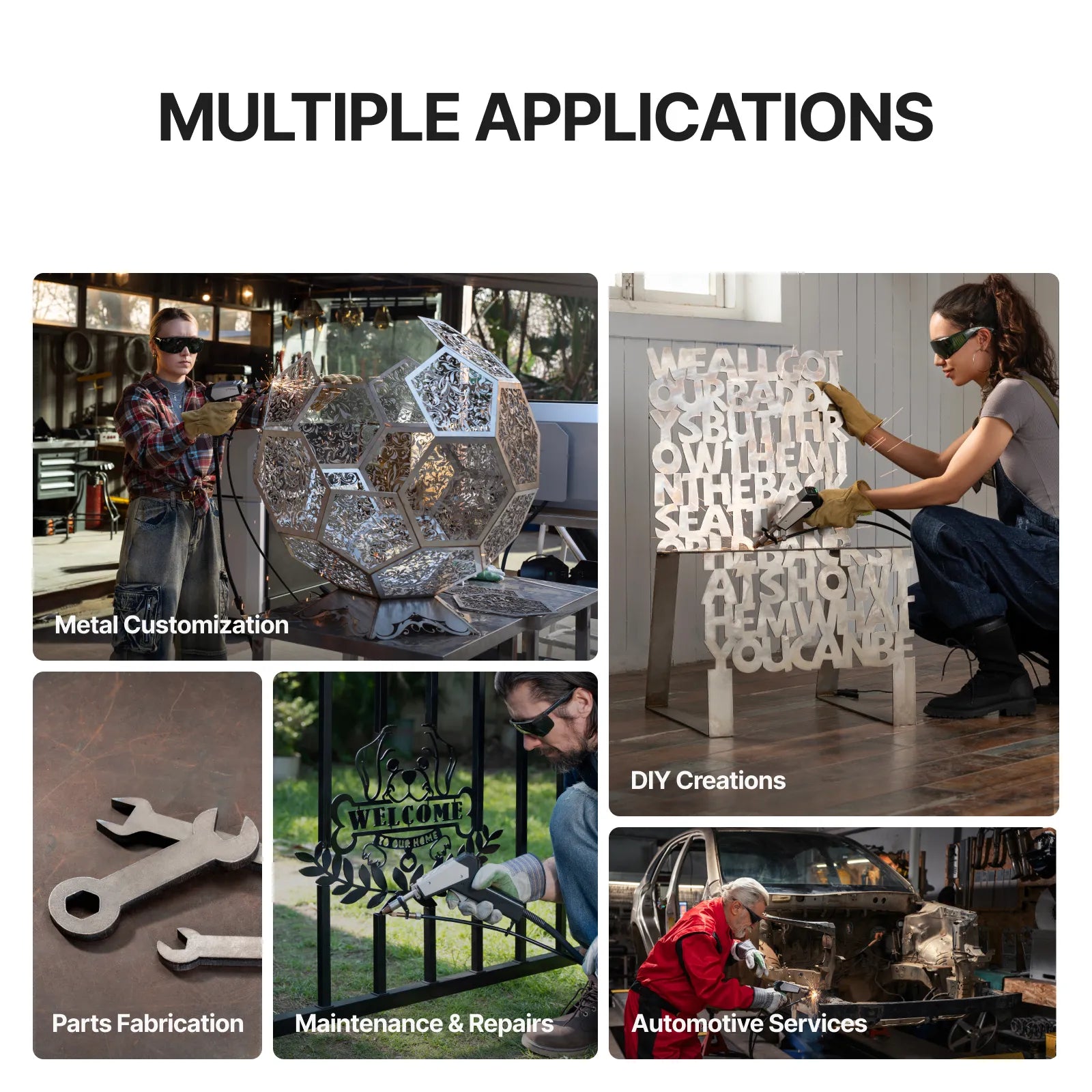 Perfectly adapted to the xTool MetalFab Laser Welder and CNC Cutter. Wide range of uses for metal customization, parts manufacturing, maintenance and repair, DIY creativity, automotive service, building decoration, aerospace, marine equipment, and other scenarios.