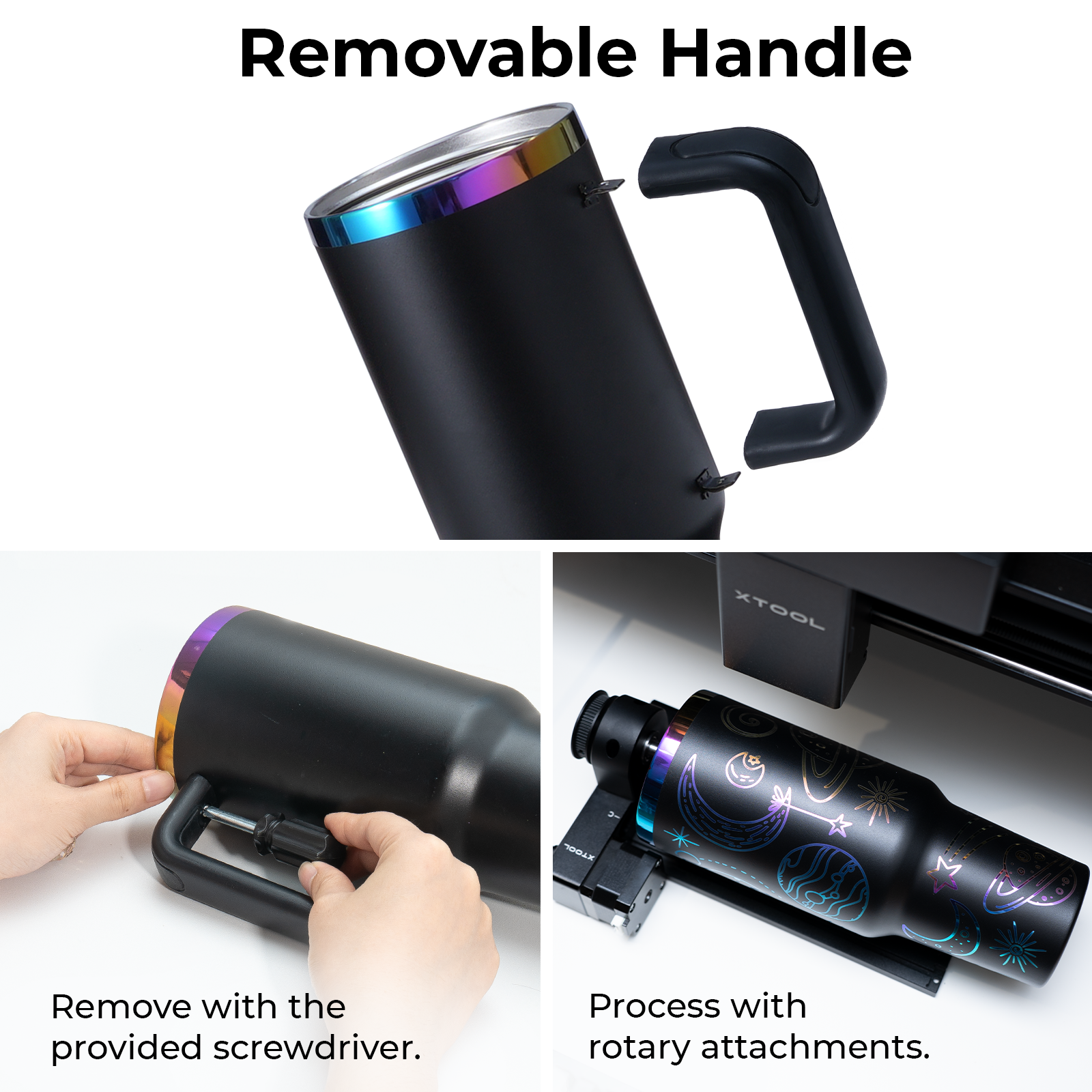Due to the different colors of each computer, there will be some errors between the color and the actual color. Suggestions include using the provided screwdriver to remove the handle and utilizing rotating attachments for processing when conducting extensive laser engraving. Exercise caution when using the cup to contain hot liquids to prevent scalding when using a straw.
