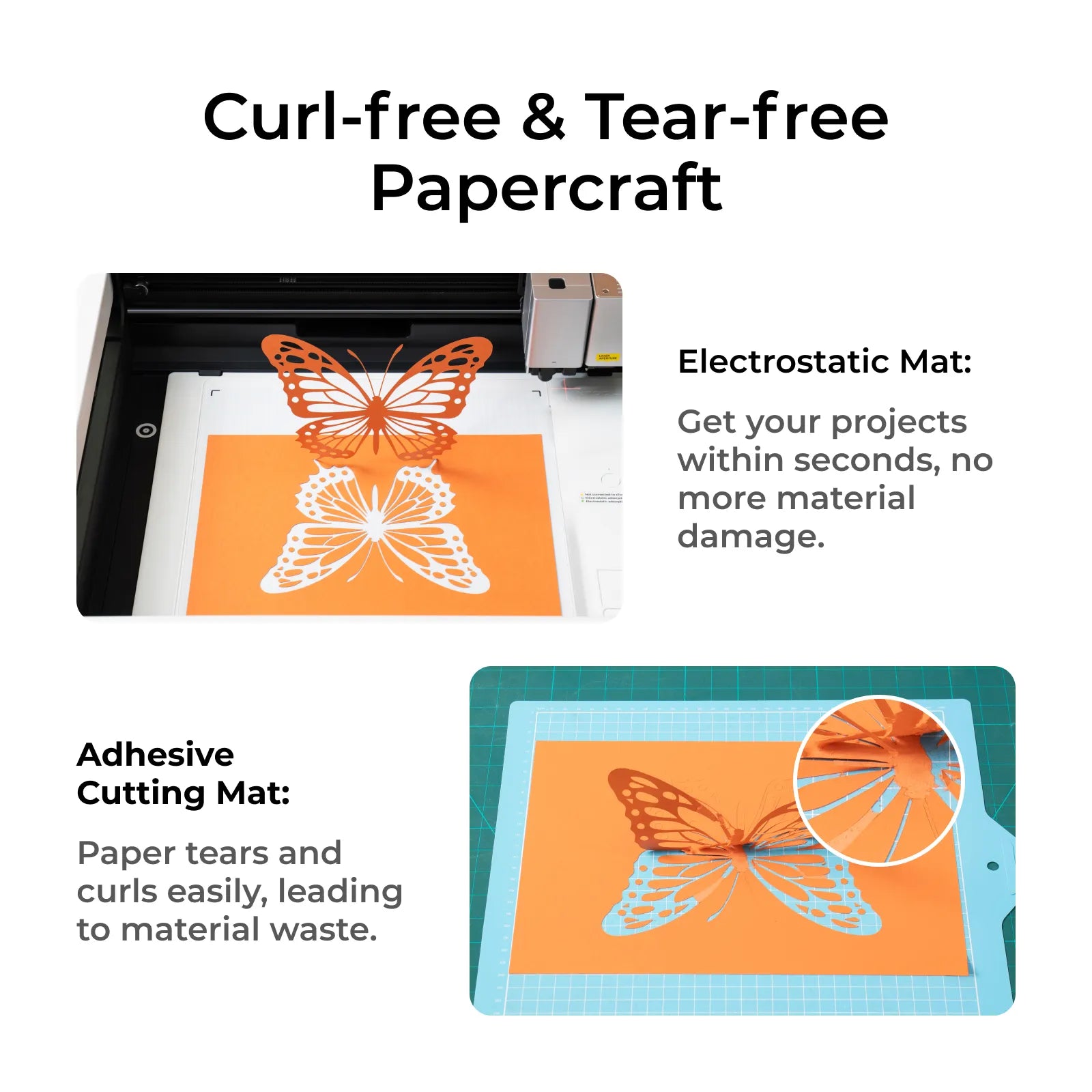 Upgrade to our Electrostatic Mat, which prevents curling and tearing. Enjoy zero material waste and no sticky leftovers, making your crafting effortless and eco-friendly!