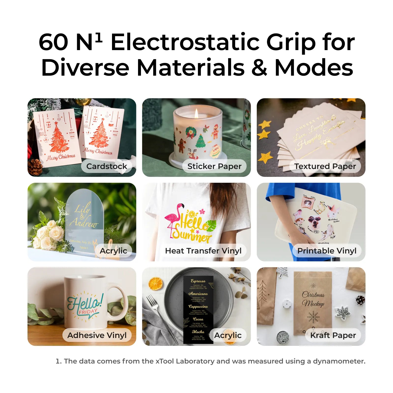The strong static force can securely hold acrylic (with protective paper), enabling inkjet printing and foil transfer, making it ideal for invitation and sign crafts.