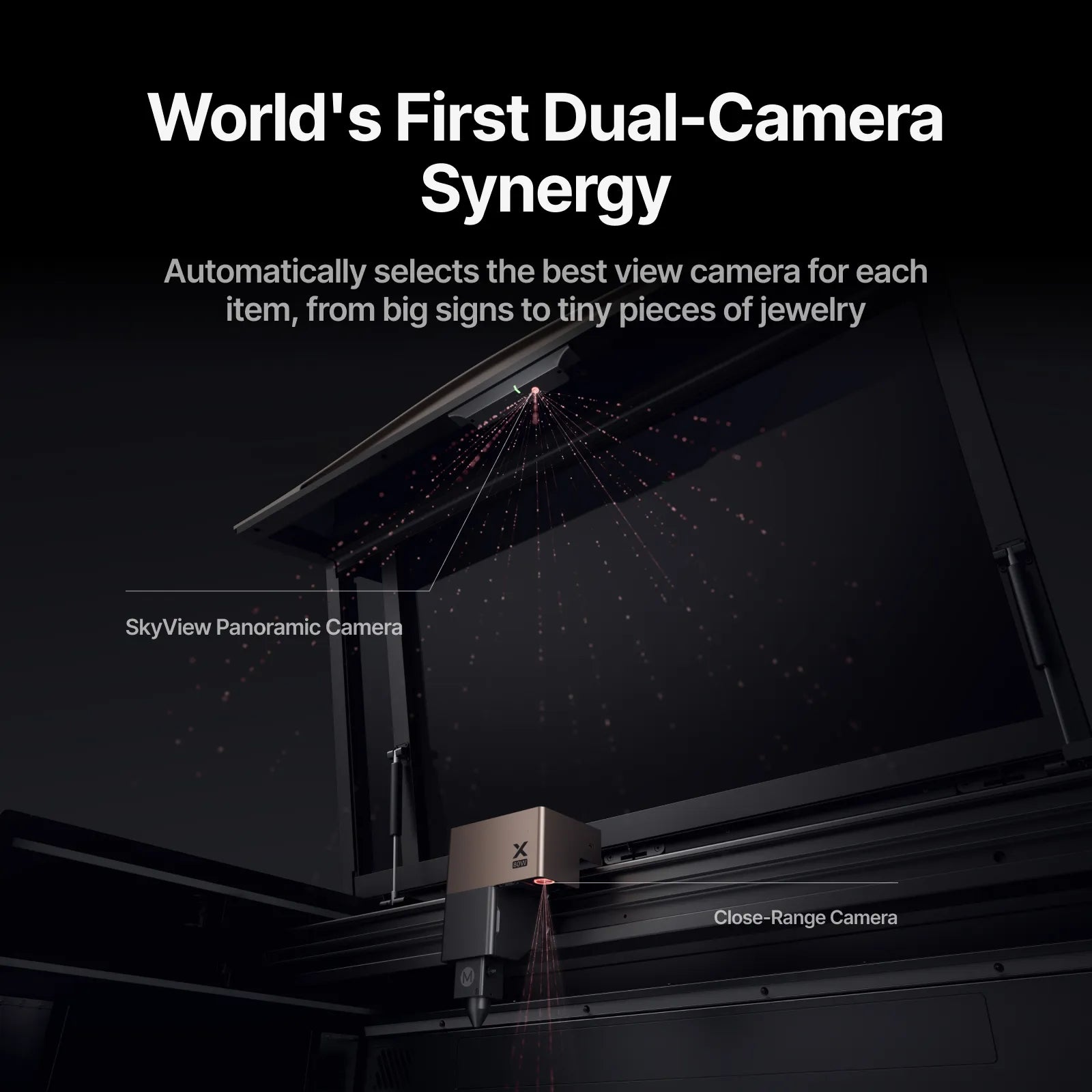 - Auto-Positioning: Simply close the lid. A high-resolution, dual-camera system (16MP SkyView camera and a close-range detail camera) instantly captures a live image of the entire workspace. This allows you to place your design onto the material with pinpoint accuracy directly in the software.