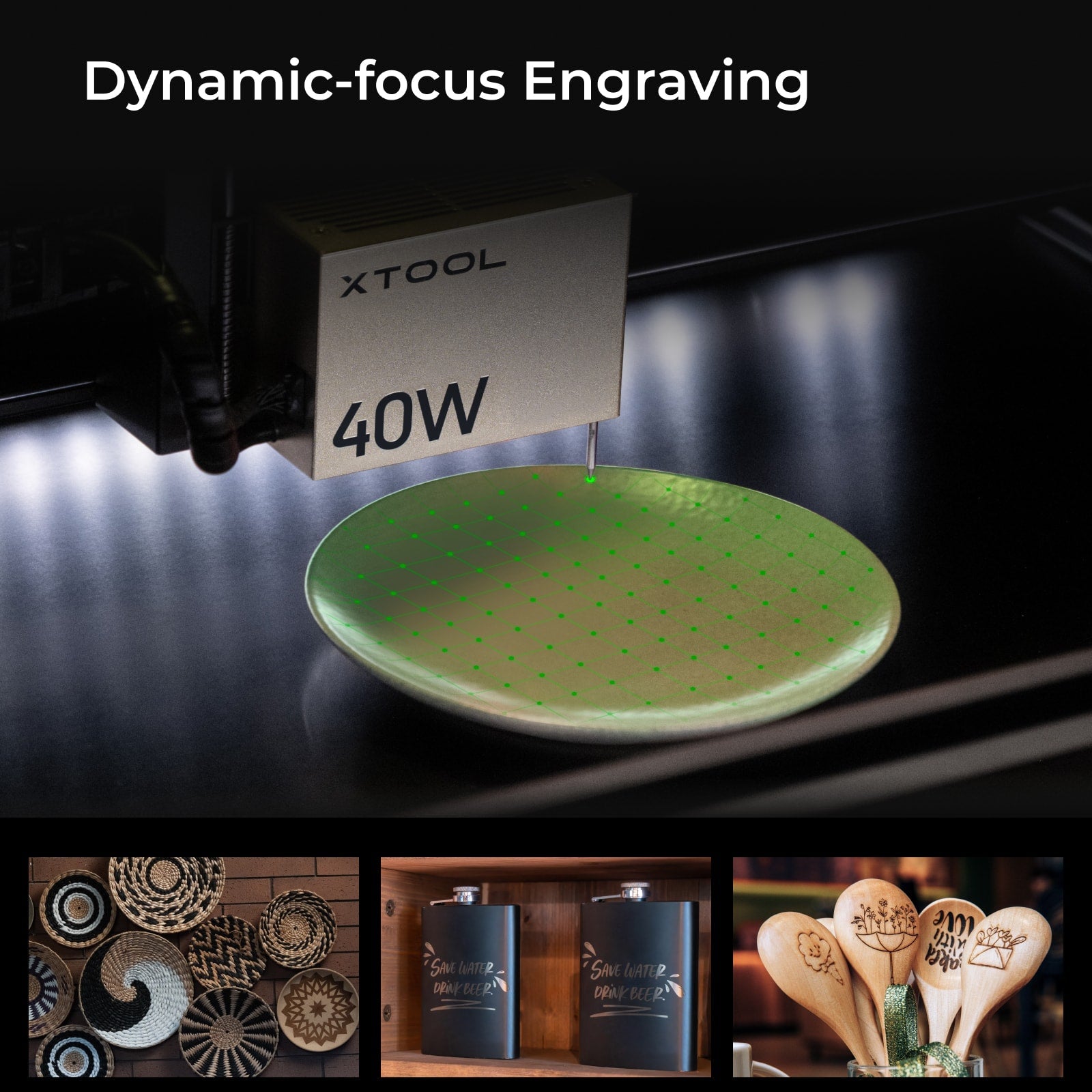 xTool S1 boasts a cutting-edge intelligent focusing system for multi-point focus ranging and 3D object automation. Its electric Z-axis dynamically refines focus, delivering a perfect engraving effect like a plane.