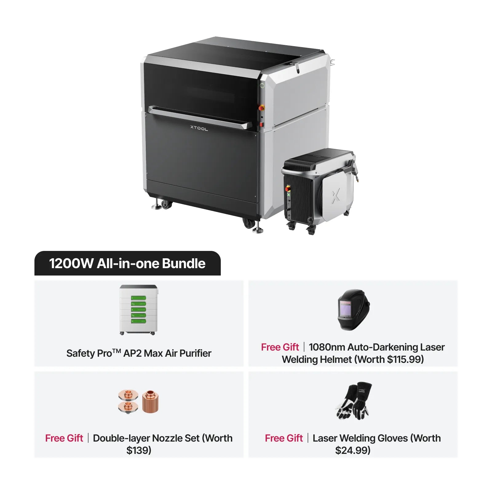 - xTool air compressor and air dryer provide stable compressed air, enabling burr-free cuts at 0.6 MPa for 4mm stainless steel, 4mm aluminum, 3mm copper, 1mm carbon steel, and galvanized steel (1200W laser) when paired with xTool SaveGas™ Nozzle. This setup significantly reduces costs compared to gas cylinders.